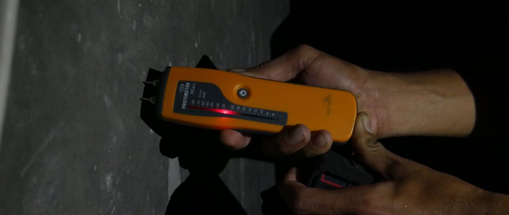 Gunakan alat pengukur kelembaban (moisture meter). Tingkat kelembaban ideal sebelum pengecatan adalah di bawah 15%.
