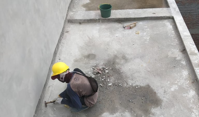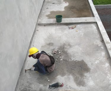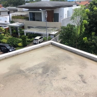 Pembersihan ke empat sisi rooftop sudah selesai dikerjakan, menunggu proses pengeringan hingga material waterproofing di aplikasikan