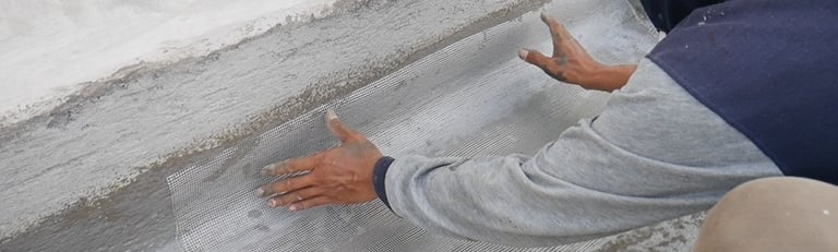 Pengaplikasian ultralastic lapis 1 dan fiber mesh