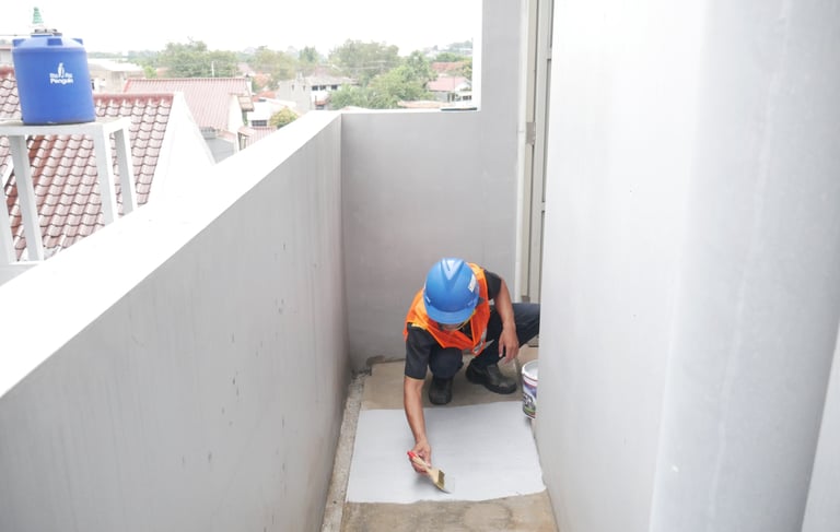Waterproofing Balkon/Teras bertujuan melindungi area terbuka dari rembesan air yang dapat merusak struktur di bawahnya. Mengingat balkon dan teras sering terpapar hujan dan perubahan suhu, waterproofing ini menggunakan bahan tahan air seperti membran, pelapis cair, atau bahan polimer. Sistem ini penting untuk mencegah keretakan, kebocoran, dan kerusakan akibat kelembapan, serta memastikan area tetap aman dan tahan lama.